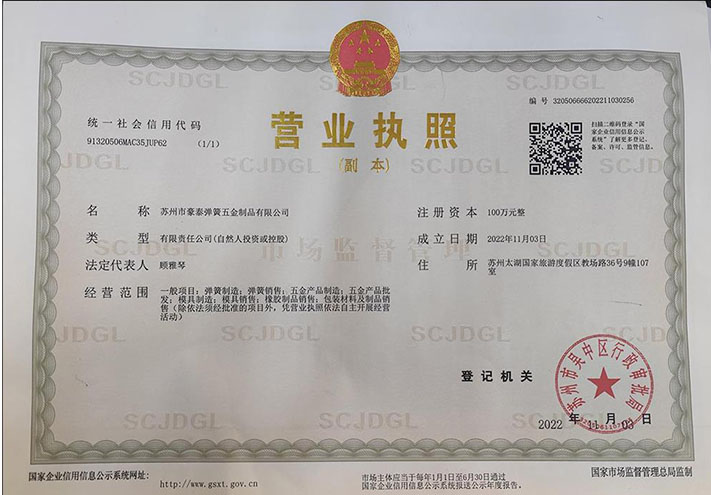 蘇州市豪泰彈簧五金制品有限公司是一家集設計、生產、制造、銷售各式彈簧、五金沖壓件、工業自動化設備及各種零配件于一體的綜合性公司。公司自創立以來,以技術性能先進、質量穩定、價格合理及完善的售后服務深受廣大客戶的青睞。 本公司擁有多名來自于深圳/上海等大中型外資企業的彈簧研發人員,可根據客戶要求,自主研發和承制各種規格的高精度拉簧、扭簧、電池簧及各種異型彈簧等,并竭誠接受同行廠商高難度高精度的各種彈簧產品訂單。 現公司擁有多臺先進技術的CNC數控高速彈簧機、CNC數控高速八型...